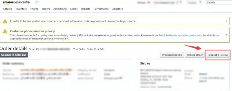 Amazon’s “Request a Review” button allows you to manually request reviews for each of your orders in Seller Central within four to 30 days of purchase.