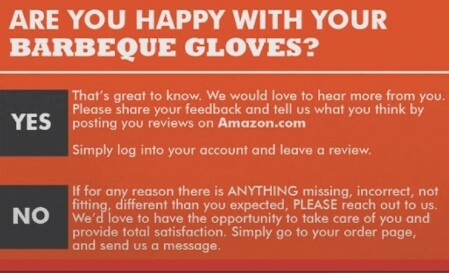 The example picture below is against Amazon’s terms. You cannot divert negative reviews or tell people to email you instead of leaving a negative review.