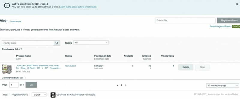 Amazon’s Vine Program is open to sellers who have Amazon brand-registered products and fewer than 30 reviews.